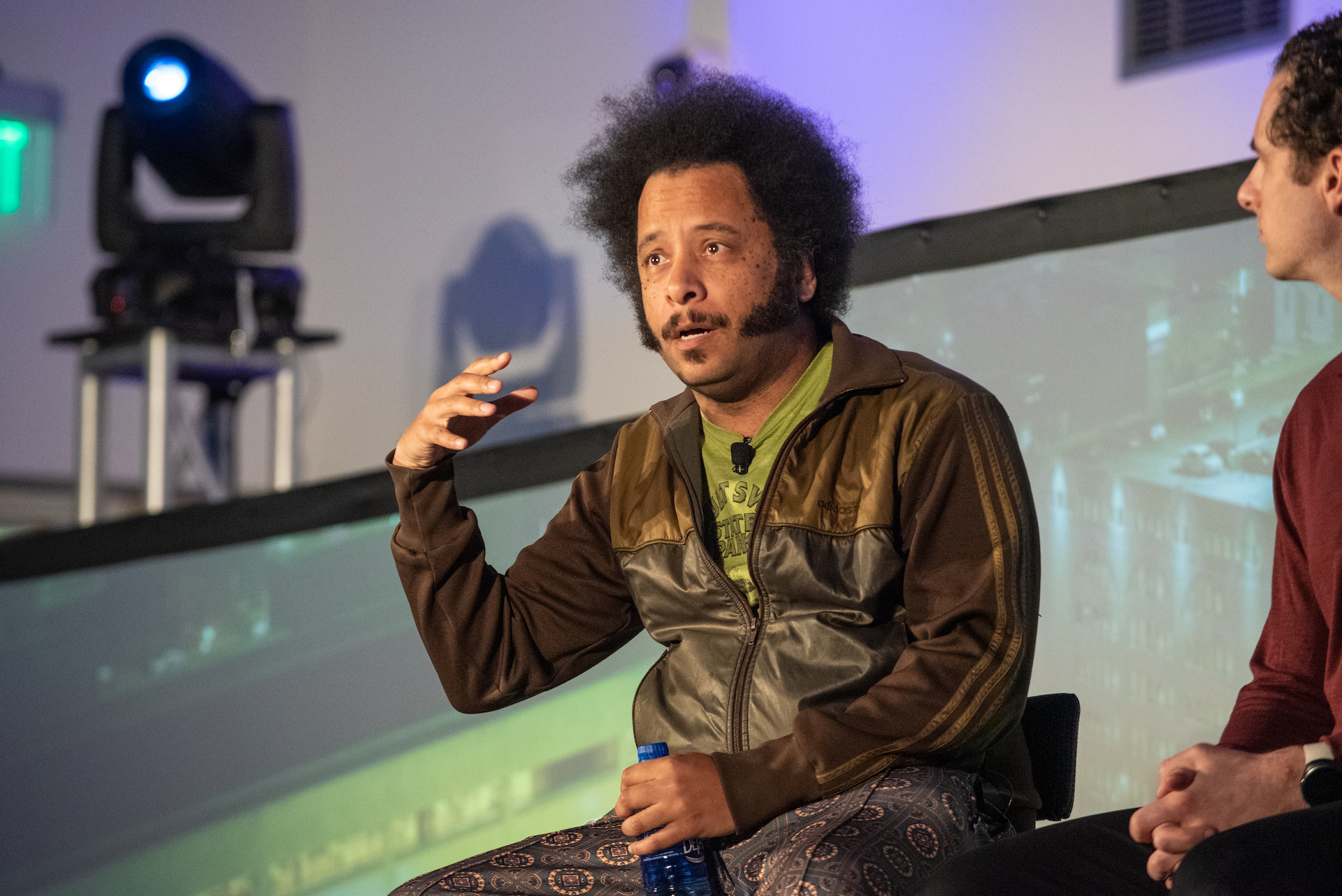 After the rush of breakouts, attendees returned to the main conference room for a conversation between Glen Weyl and acclaimed musician, activist, and director of the acclaimed film Sorry to Bother You, Boots Riley on art’s role in political action, moderated by Ananya Chakravarti. Revolving around discussions of clips from Sorry to Bother You, the conversation addressed art as a tool for action, the obligations of artists to engage in the world, and the power of art to reveal hidden truths. The conversation proved to be one of the most interesting and provocative of the conference.